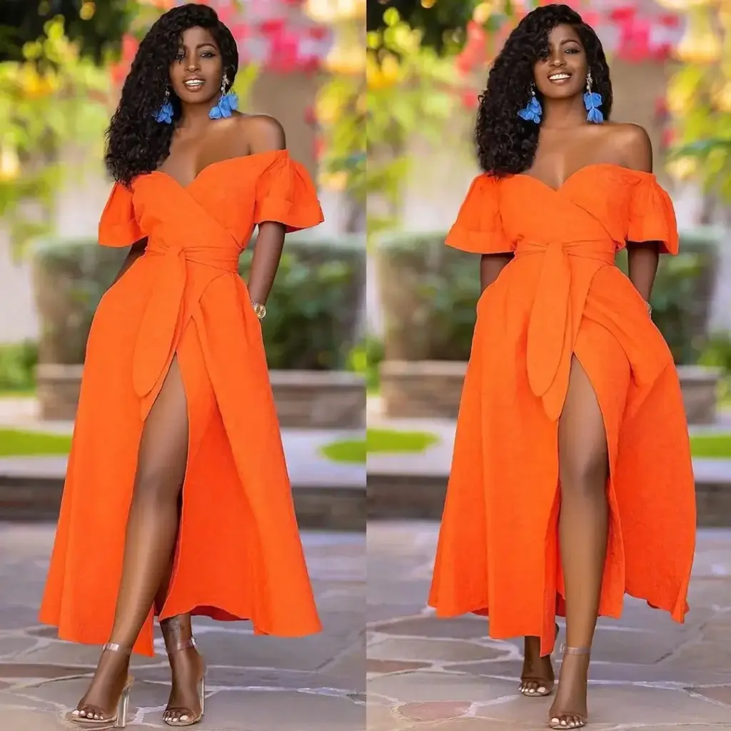 - Petite figures benefit from fitted bodices, defined waistlines, and vertical draping. These elements elongate the frame and prevent the dress from overwhelming the silhouette, especially in bold orange tones.